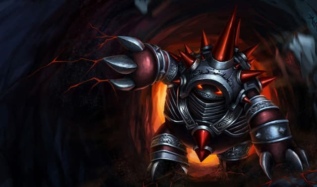 람머스가 공중으로 뛰어오른 후 대상 지점에 착지하여 마법 피해를 입히고 적을 둔화시킵니다. 대회전 상태에서 사용하면 범위 중앙 근처에 있는 적을 공중으로 띄워 올립니다.